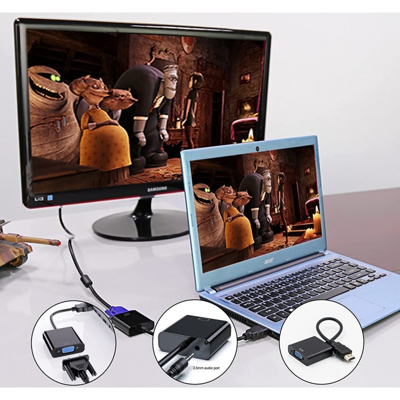 Pozwala na podłączenie monitora lub projektora ze złączem VGA do dowolnego urządzenia wyposażonego w złącze HDMI np. smartfonu, tabletu, laptopa, komputera, konsoli, itp. Z sygnału HDMI przez kabel jack możemy także uzyskać sygnał audio.