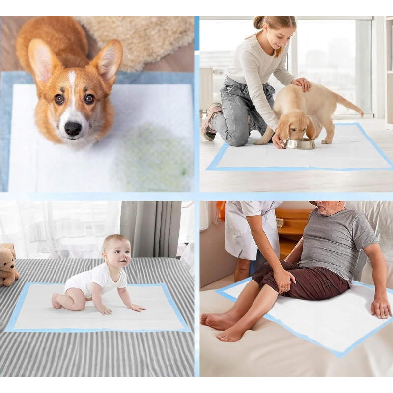 - Uniwersalne Zastosowanie: Podkłady idealnie sprawdzą się nie tylko dla psów, ale także dla innych zwierząt domowych, takich jak koty, króliki, czy świnki morskie. Mogą być stosowane zarówno w domu, jak i podczas podróży, co czyni je praktycznym rozwiązaniem dla każdego właściciela zwierząt. Idealne do nauki czystości, opieki nad starszymi psami, a także do stosowania w transporterach czy klatkach.