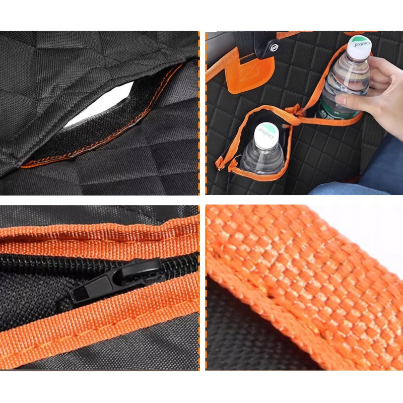 - Zamki błyskawiczne: Elastyczna konstrukcja pokrowca pozwala na odpinanie i składanie jego części dzięki wytrzymałym zamkom. Możesz oddzielić część pokrowca, aby stworzyć przestrzeń dla pasażera obok psa lub wykorzystać go do różnych innych potrzeb.