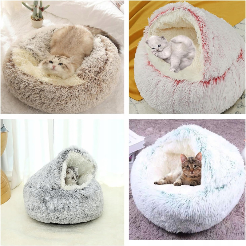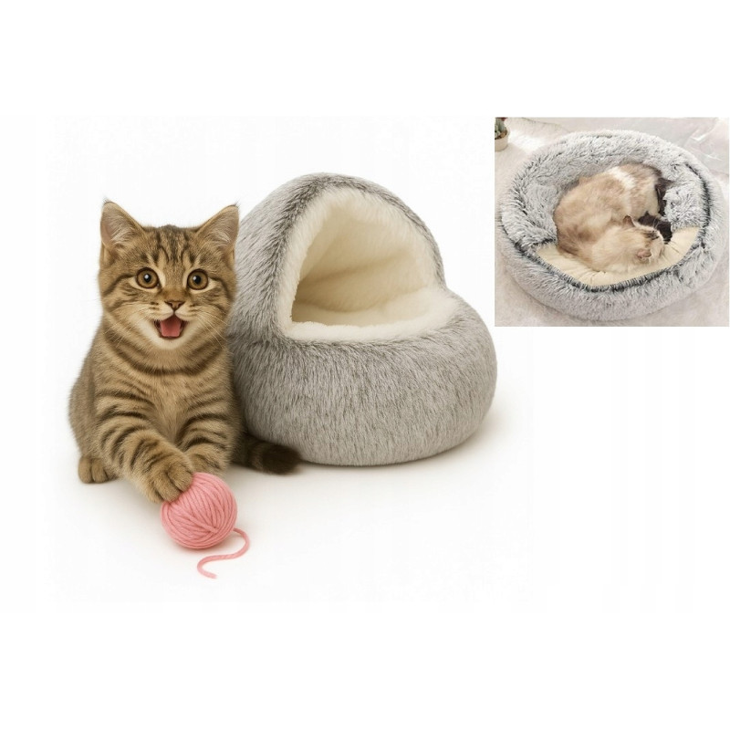 Luksusowe Legowisko Śpiwór Dla Kota Psa Miękki Plusz Okrągłe Ciepłe Czarne