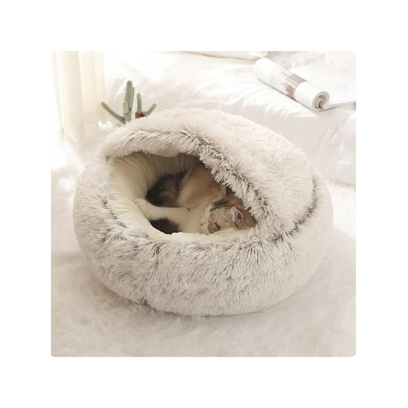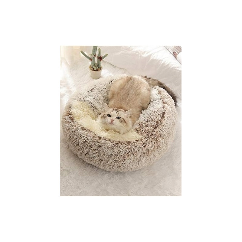 Luksusowe Legowisko Śpiwór Dla Kota Psa Miękki Plusz Okrągłe Ciepłe Brązowe