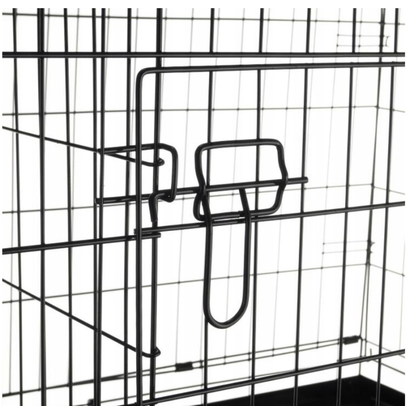 - Podwójne Drzwi z Zabezpieczeniami: Klatka wyposażona jest w podwójne drzwi – jedne frontowe, drugie boczne – co pozwala na łatwy dostęp do zwierzęcia oraz elastyczne umiejscowienie klatki w pomieszczeniu. Dodatkowo, drzwi są zamykane na zasuwy w kształcie litery L, które skutecznie chronią przed przypadkowym otwarciem.