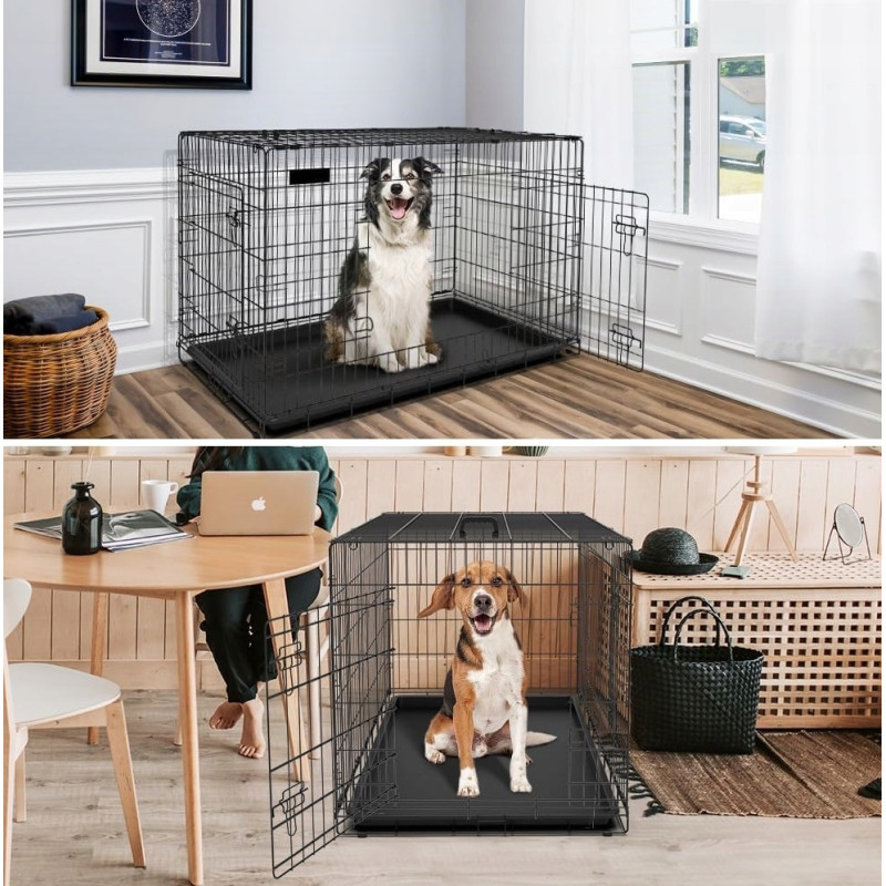 - Wentylacja i Widoczność: Klatka ma otwartą konstrukcję z odpowiednio rozmieszczonymi prętami, które zapewniają optymalną cyrkulację powietrza. Dzięki temu Twój pies zawsze ma świeże powietrze, co jest szczególnie ważne podczas długotrwałego przebywania w zamknięciu.