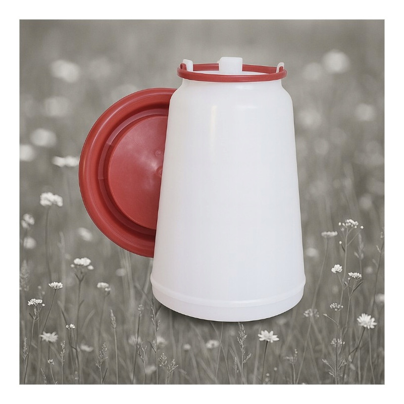 - Kolor: zbiornik mleczny/przezroczysty, miska czerwona, rączka czerwona