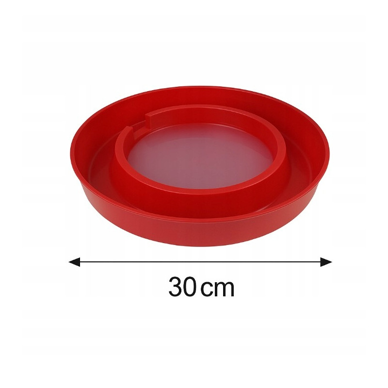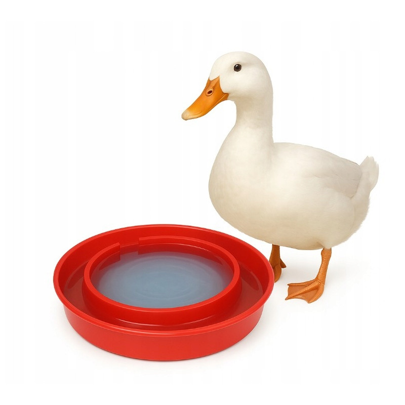 - Czerwona misa o wyprofilowanym kształcie zapobiega rozlewaniu wody.