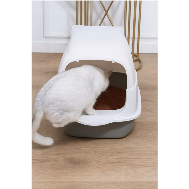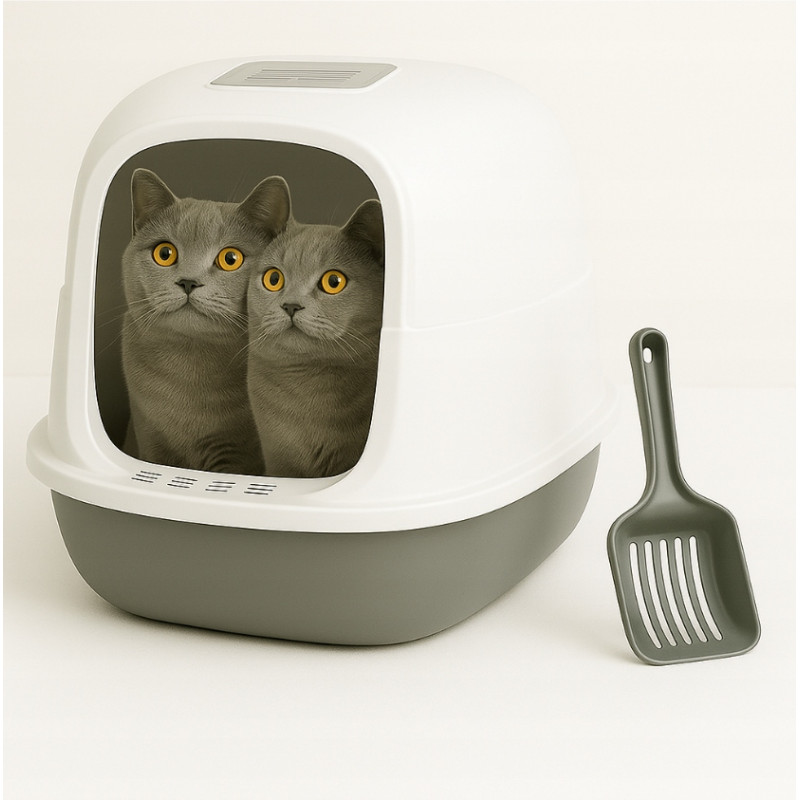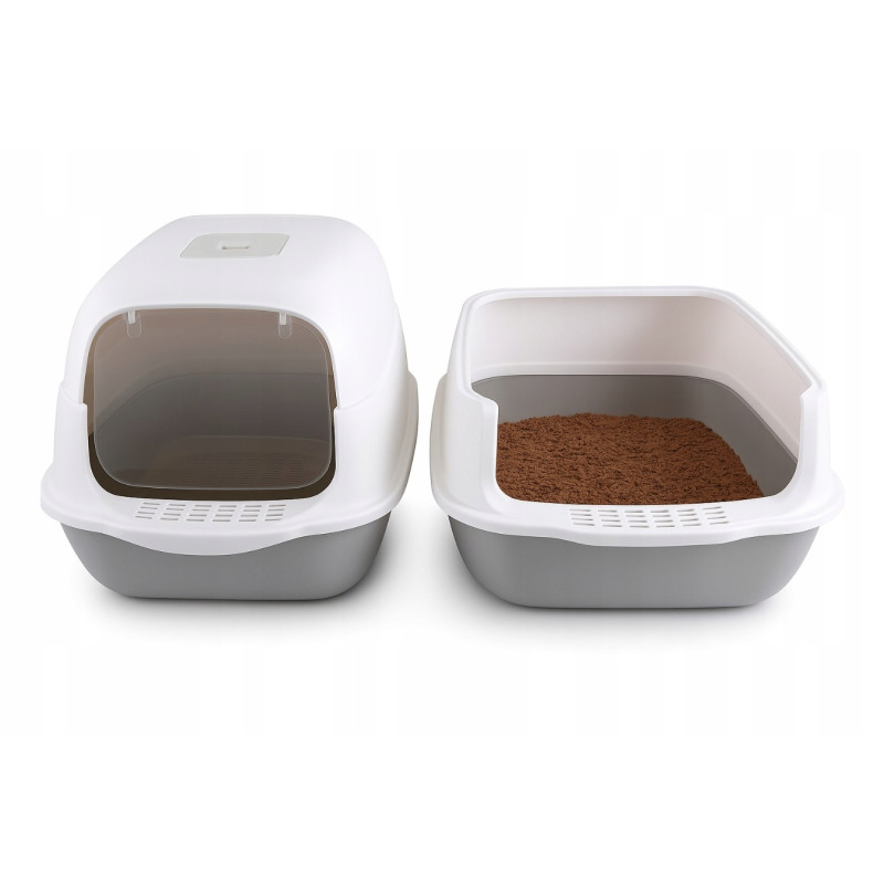 Duża Zamknięta KUWETA dla Kota Duża Klatka z Filtrem XL Szara + Łopatka