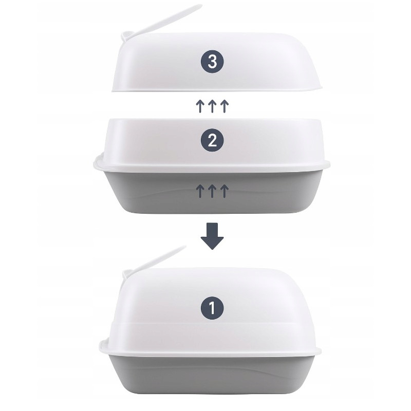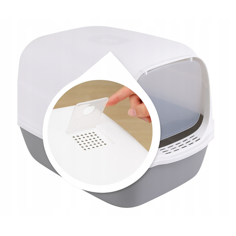 Trzyczęściowa konstrukcja ułatwiająca czyszczenie i montaż. Wysoka obudowa zapobiega rozsypywaniu żwirku, a zdejmowana pokrywa z wentylacją zapewnia komfort i higienę. Idealna do domu – praktyczna, trwała i estetyczna.