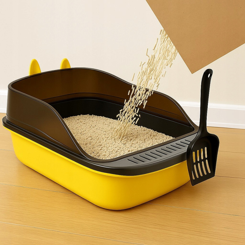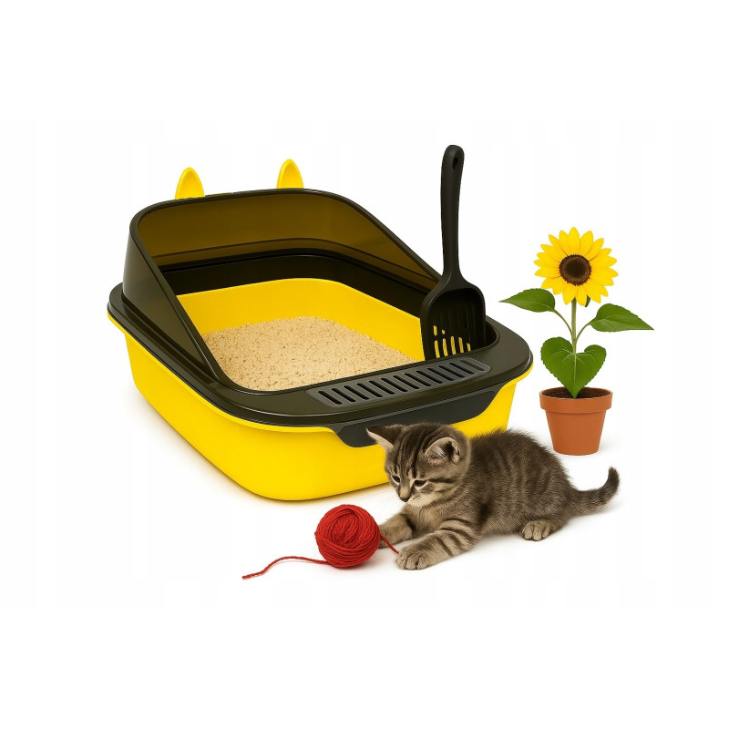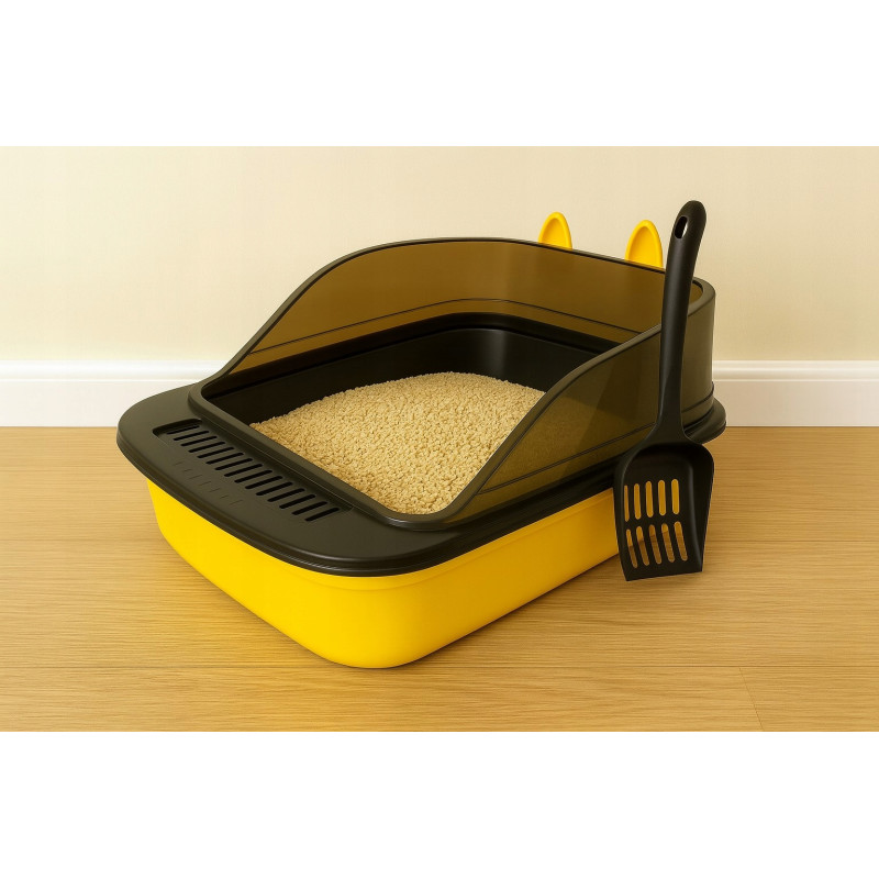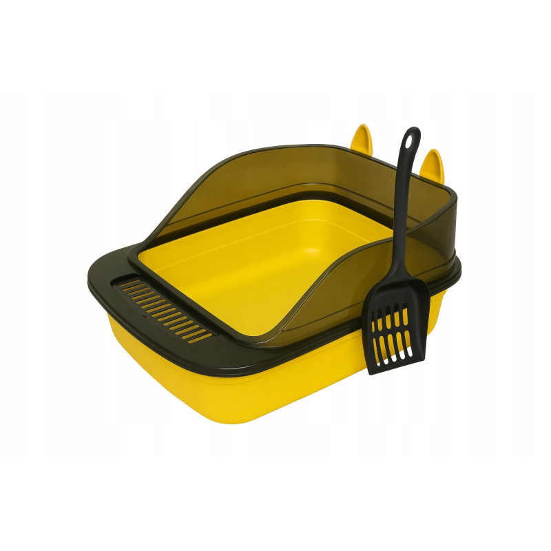 Duża Kuweta dla Kota z Uszami ŻÓŁTA Otwarta Solidna Wytrzymała XXL Łopatka