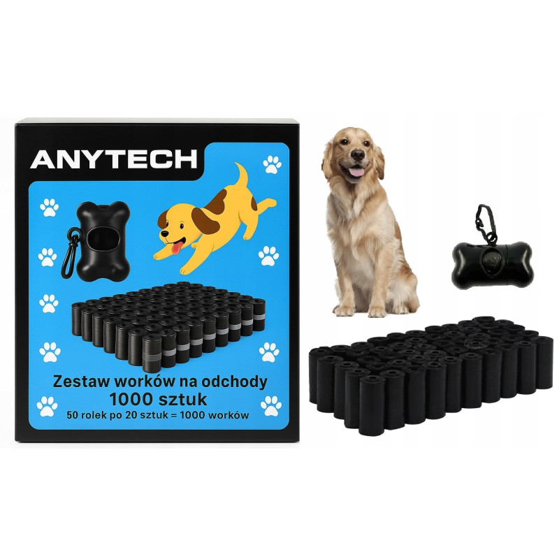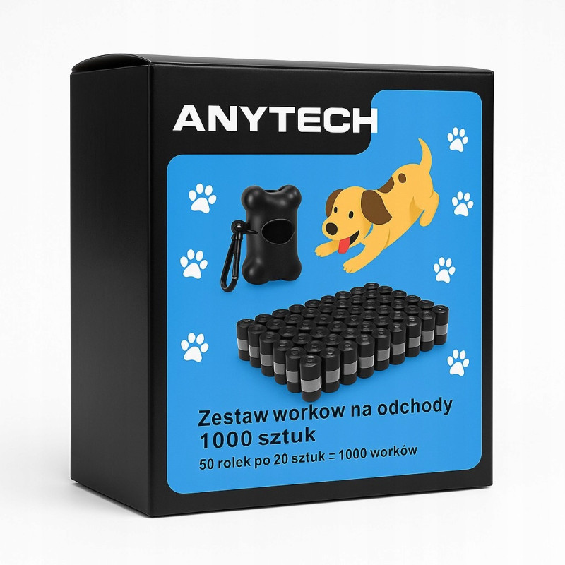 | Nazwa handlowa | Worki Woreczki na Psie Odchody Kupy Psa Mocne Czarne Grube 1000 szt + Etui ANYTECH |