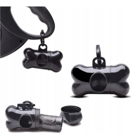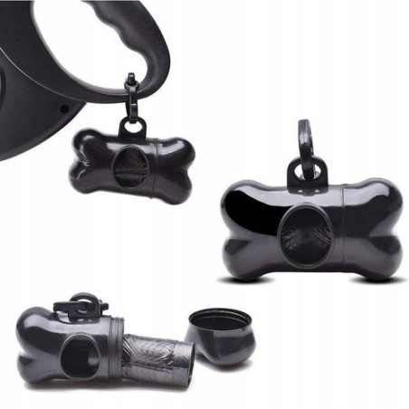 Zestaw zawiera stylowe, czarne etui w kształcie kostki, które z łatwością zmieści każdą rolkę i ułatwi szybki dostęp do worków. Dzięki karabińczykowi możesz przypiąć je do smyczy, torby lub szlufki, dzięki czemu nigdy nie zapomnisz o woreczkach na spacerze.