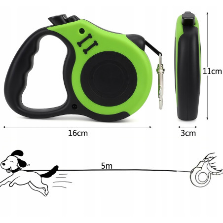 Smycz Automatyczna dla Psa Kota Flexi Zwijana z Blokadą 5m 20kg ZIELONA