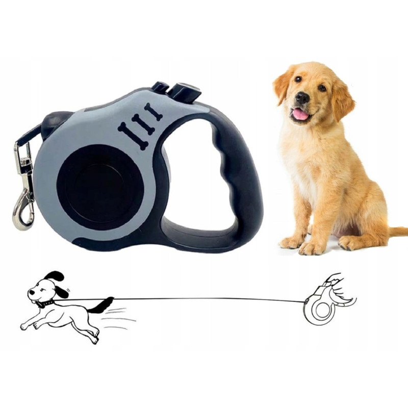 Smycz Automatyczna dla Psa Kota Flexi Zwijana z Blokadą 5m 20kg SZARA