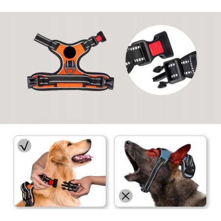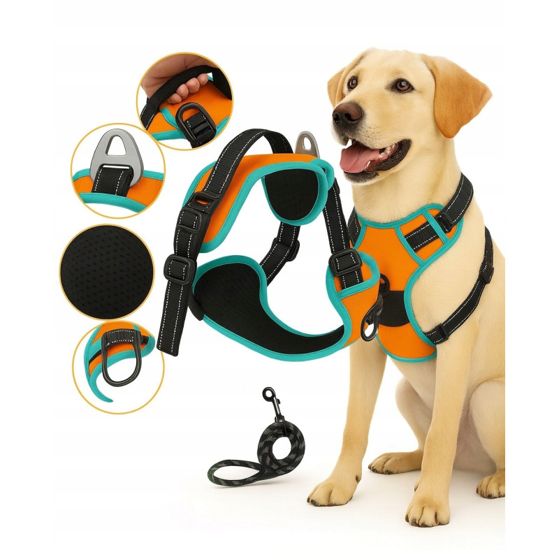 Szelki dla Psa Bezuciskowe POMARŃCZOWE Guard Wygodne Odblaskowe S + Smycz