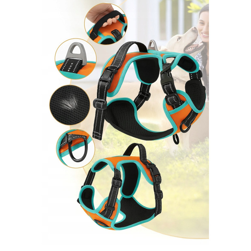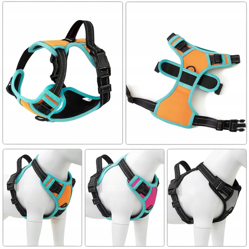 - Bezpieczne dopasowanie – 4 regulowane paski pozwalają idealnie dopasować szelki do sylwetki psa, eliminując ryzyko wysunięcia się.