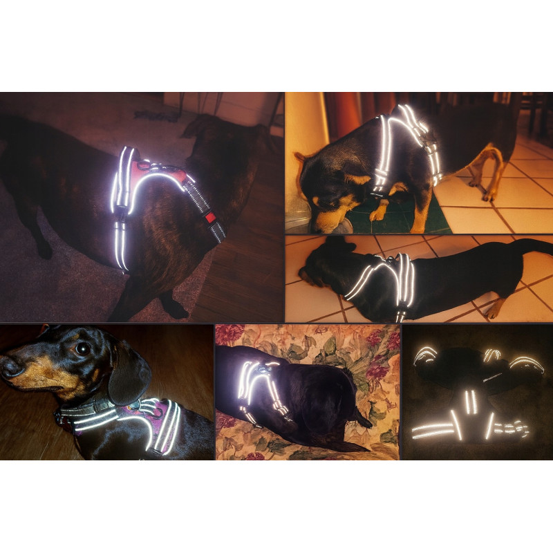 Dzięki inteligentnemu systemowi 2 klamer szybkiego zapięcia, zakładanie i zdejmowanie jest niezwykle proste, a odblaskowe elementy i metalowe zapięcia zapewniają pełną kontrolę nad pupilem nawet po zmroku.