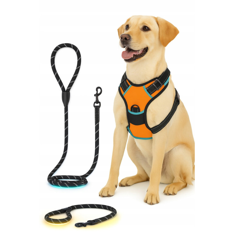 Szelki dla Psa Bezuciskowe POMARAŃCZOWE Guard Wygodne Odblaskowe L + Smycz
