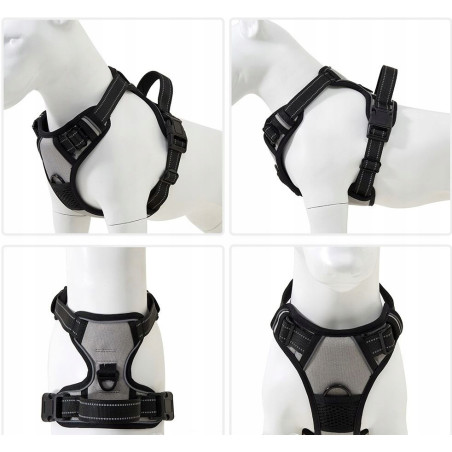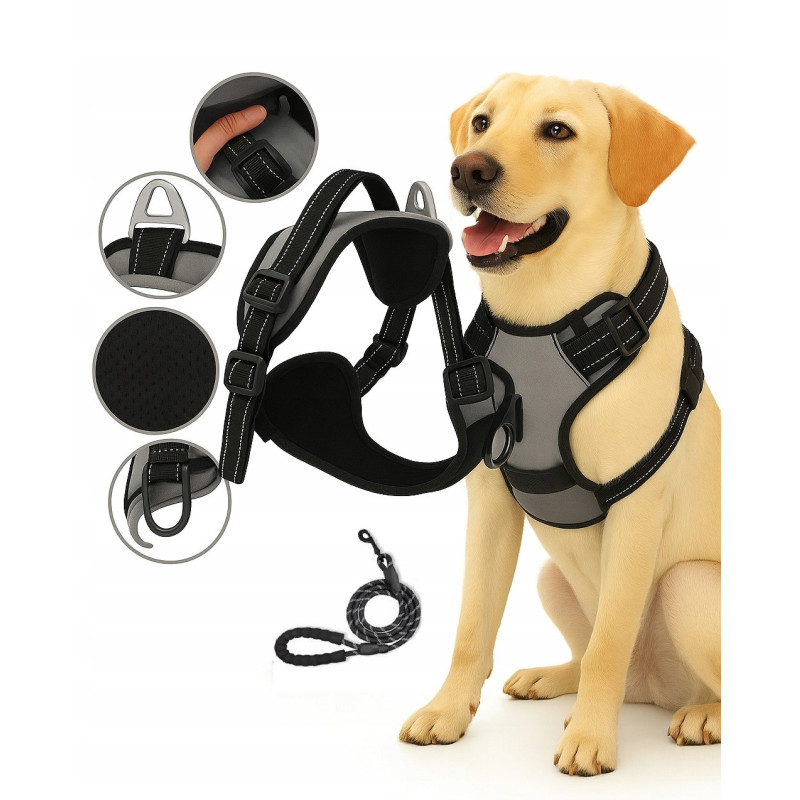 Szelki dla Psa Bezuciskowe SZARE Guard Wygodne Odblaskowe M + Smycz
