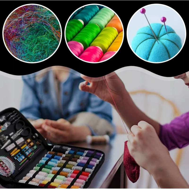 Dzięki różnorodnym narzędziom, kolorowym niciom i solidnemu etui wszystko masz zawsze pod ręką.