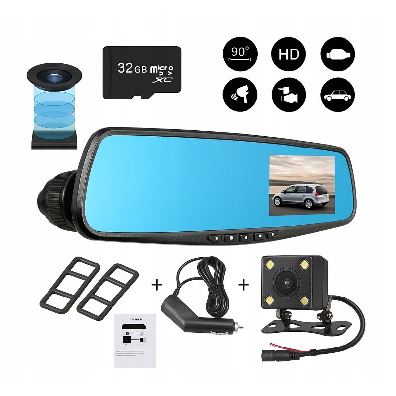 Kamera Samochodowa Wideorejestrator w lusterku 1080P FULL HD karta SD 32GB