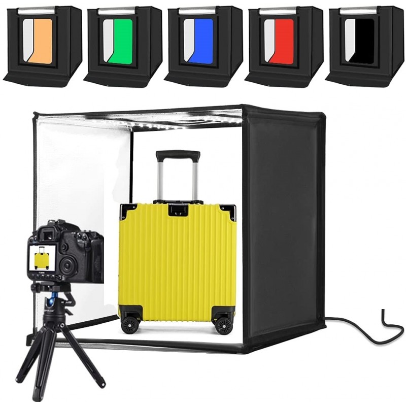 Szeroki front pozwala na fotografowanie większych obiektów, odpinana ściana przednia pozwala uniknąć niechcianych refleksów na powierzchni a otwór z góry namiotu daje możliwość fotografowania nawet gładkich, lustrzanych powierzchni.