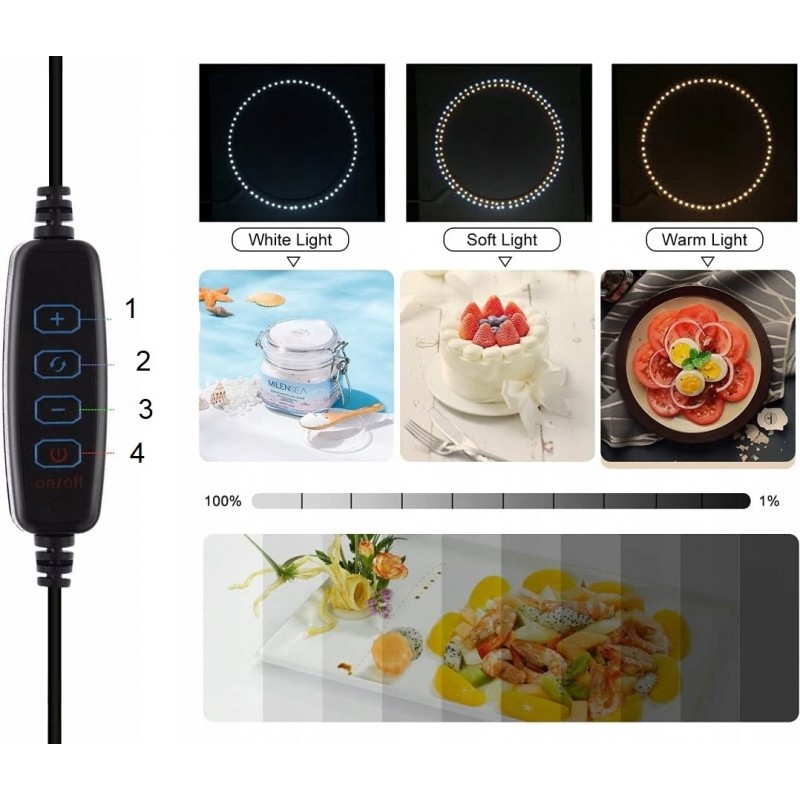 Urządzenie posiada 10 trybów jasności oświetlenia, sterowanych pilotem