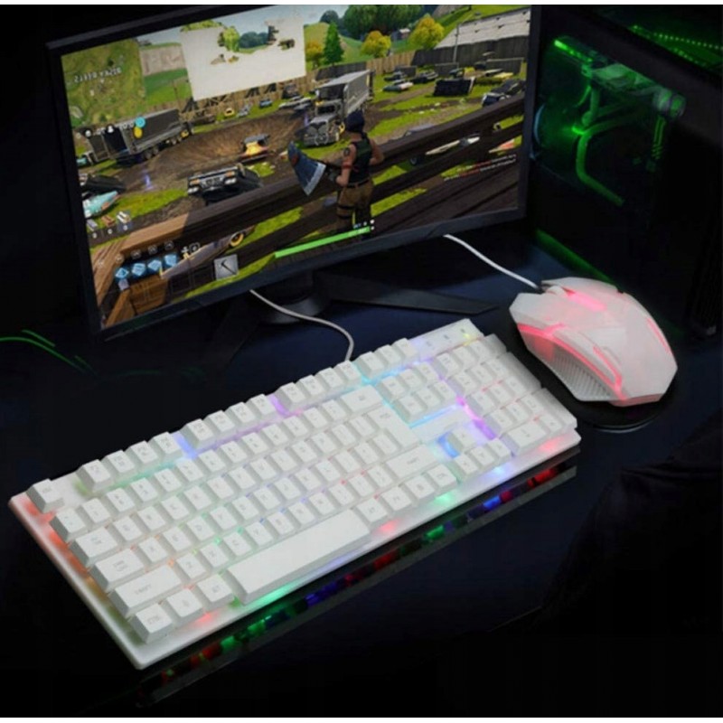 KLAWIATURA PODŚWIETLANA DLA GRACZY GAMINGOWA +MYSZ WHITE