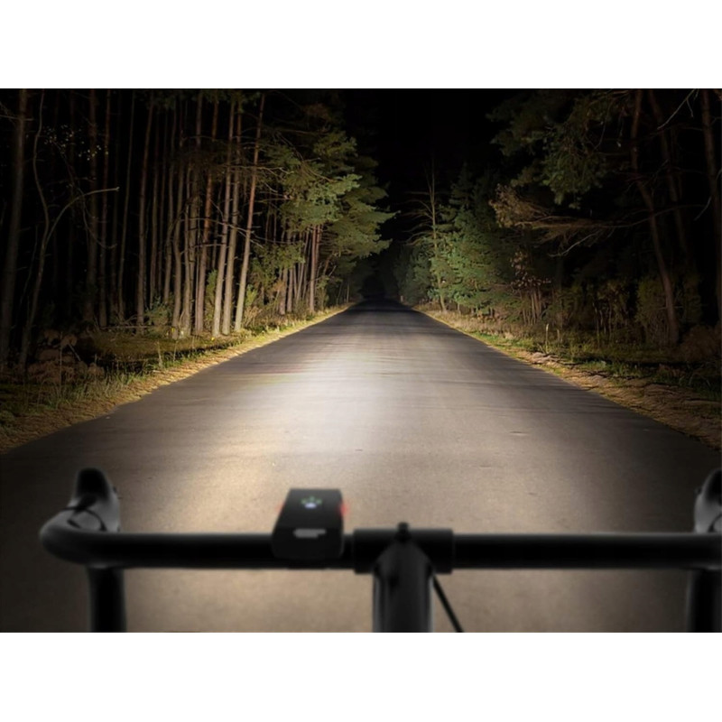 - Niezwykła jasność: przednia lampka generuje aż 1200 lumenów, co pozwala oświetlić drogę nawet na 200 metrów przed Tobą. Doskonała widoczność w mieście i w terenie.