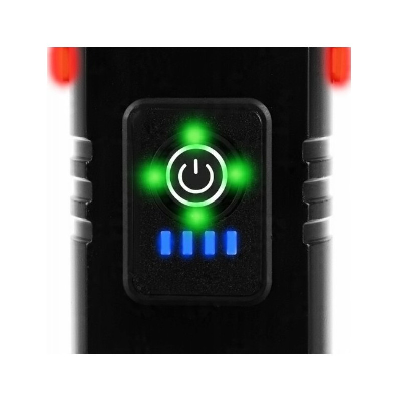 - Wskaźnik naładowania baterii: 4 diody LED informujące o poziomie naładowania lampki.