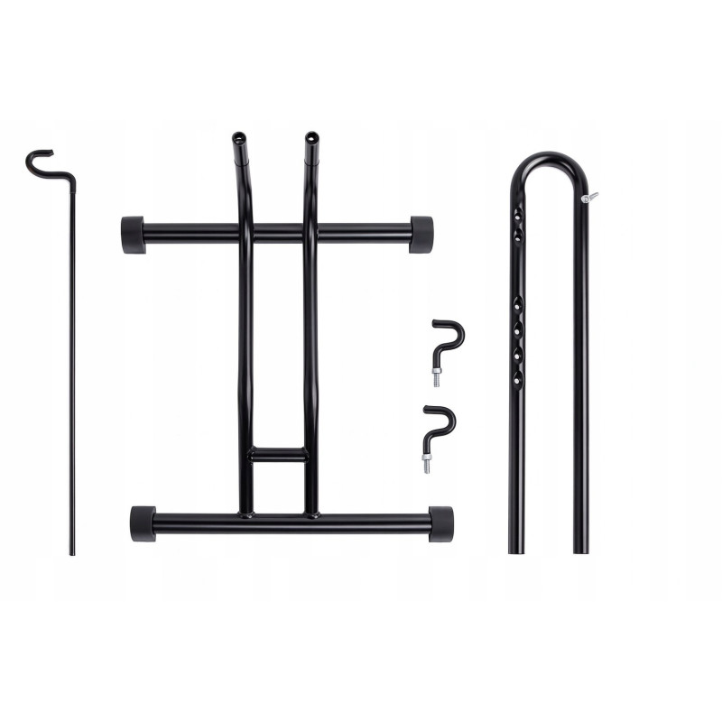 - Regulowane haki: dopasuj wysokość do różnych rozmiarów ram i kół