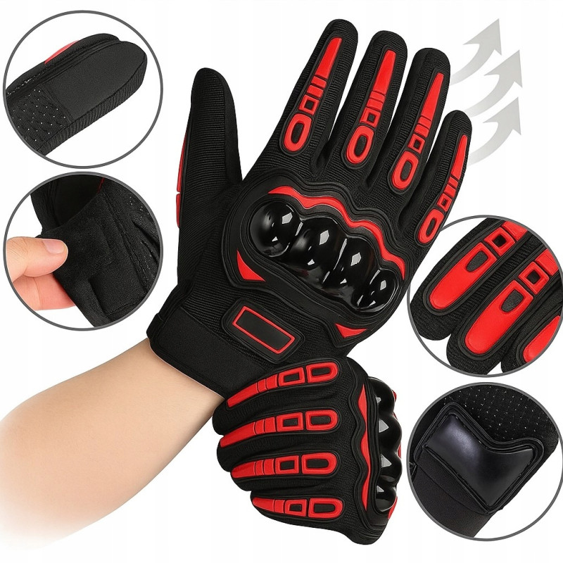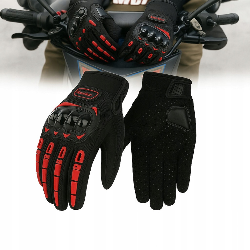 Rękawice Motocyklowe Rękawiczki Letnie Dotykowe Skuter Rower CZERWONY L