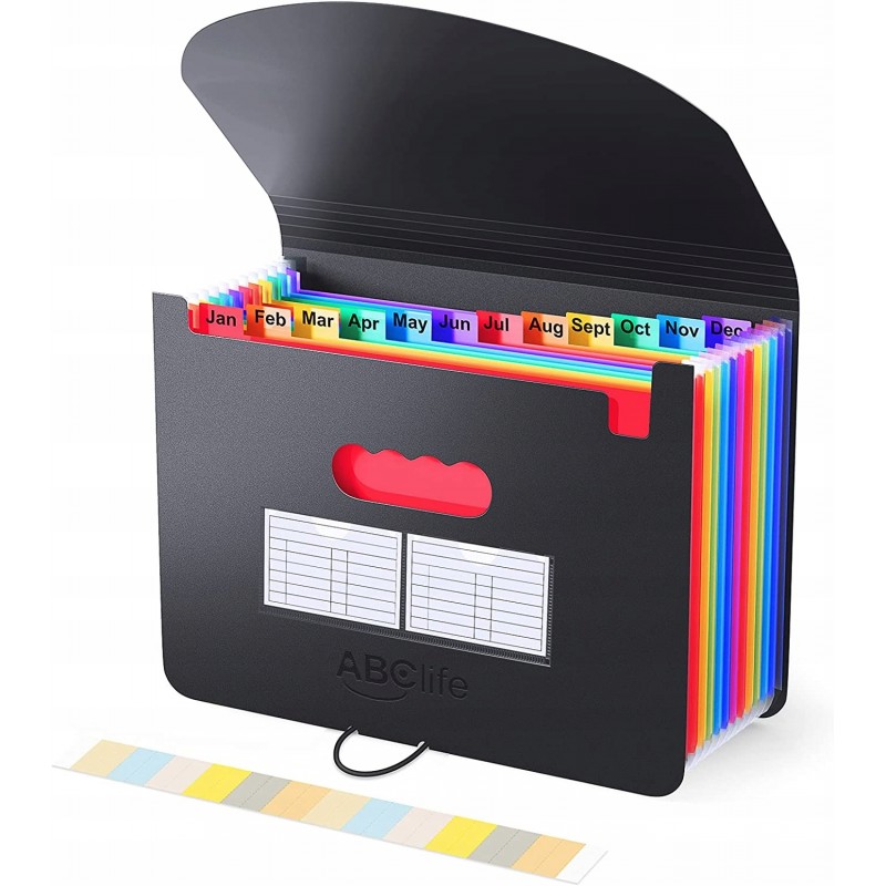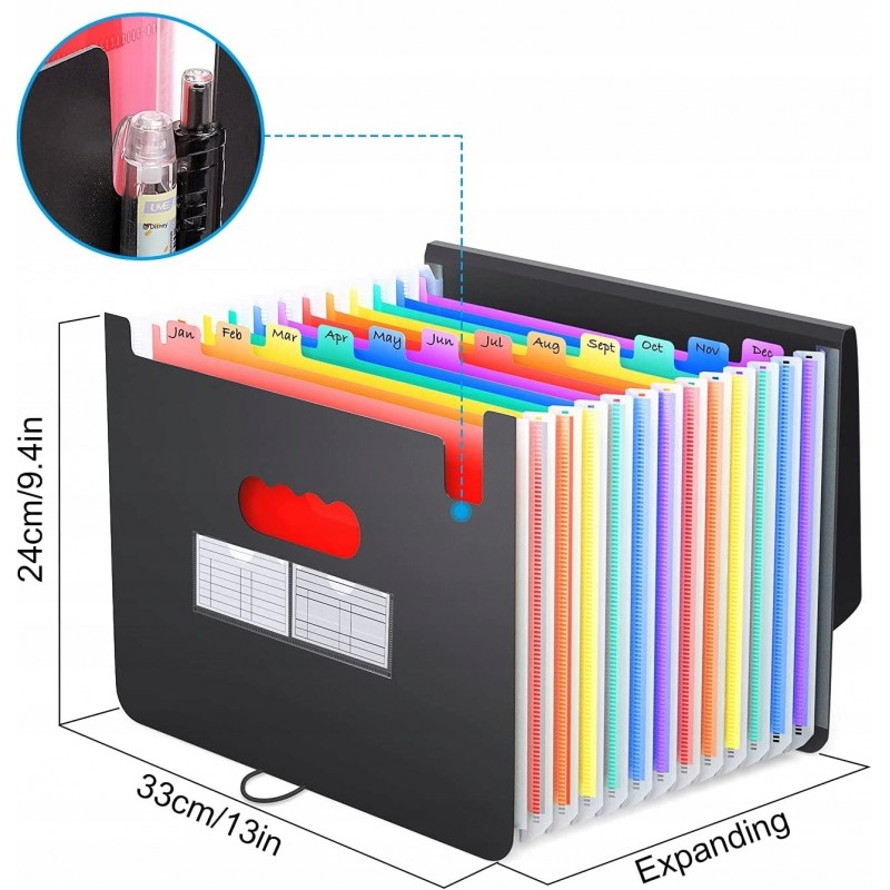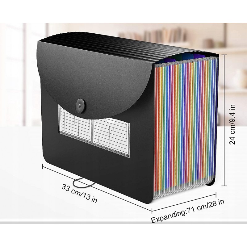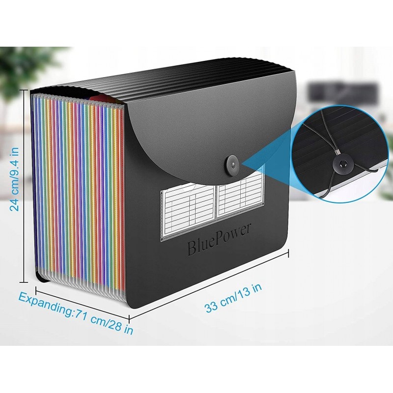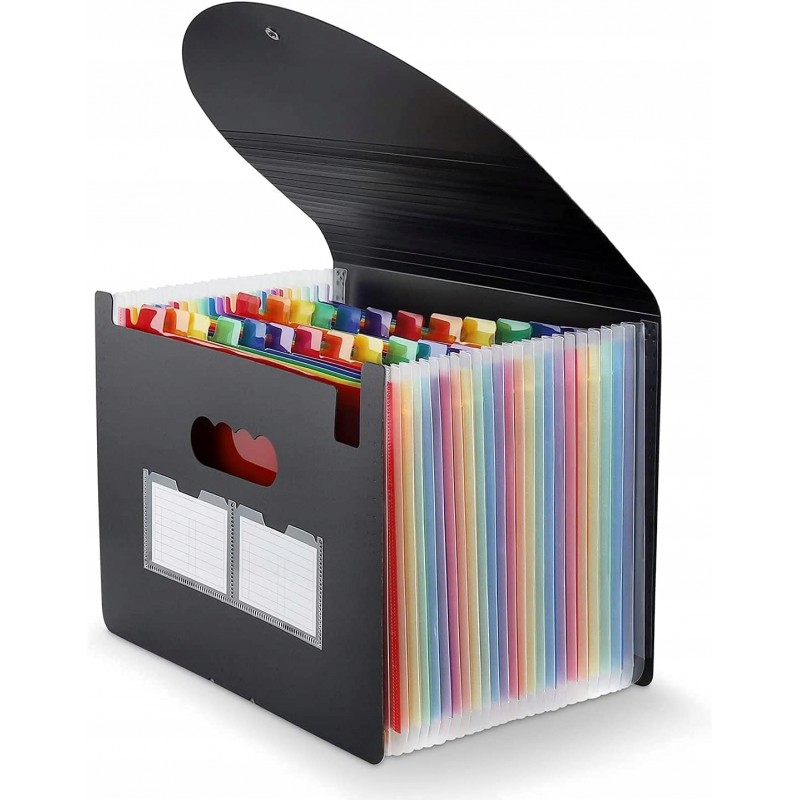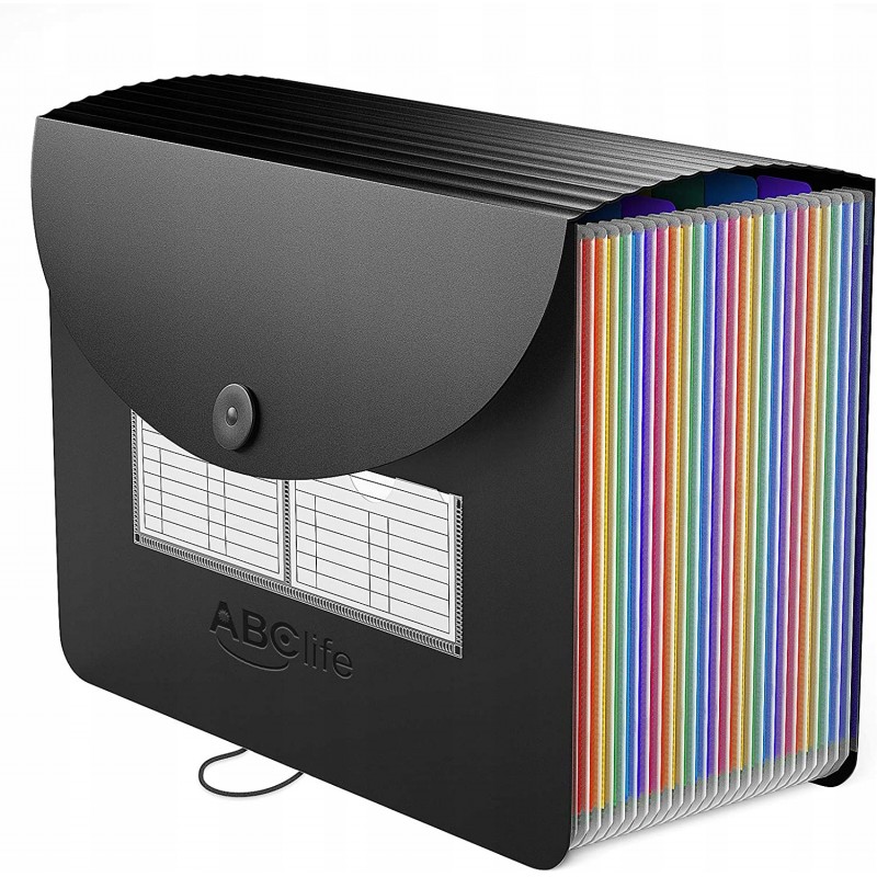 Oszczędza czas - 24 kolorowe kieszenie z górnymi zakładkami tworzą niezależne miejsca na dokumenty. Można użyć dostarczonych kolorowych etykiet do sortowania dokumentów według kategorii, co skraca czas wyszukiwania dokumentów.