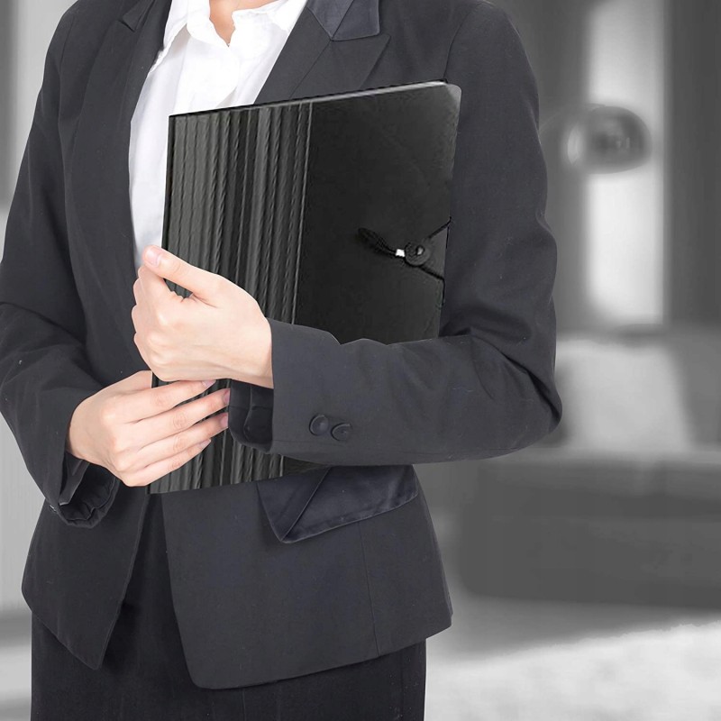 Bezpieczne zamknięcie teczki - pełnowymiarowa, elastyczna klapa teczki i zapięcie na gumkę, zapewniają pełne bezpieczeństwo. Aby uzyskać dostęp do przechowywanych przedmiotów, wystarczy złożyć klapkę. Po zakończeniu, załóż klapkę w górę i nad górną część teczki i zabezpiecz ją na miejscu za pomocą zapięcia na sznurek.