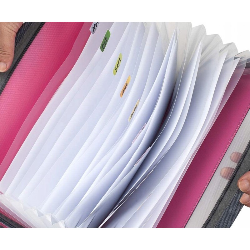 Posiada 13 kieszeni na dokumenty A4, Do kieszeni można łatwo włożyć nawet ponad 100 kartek papieru