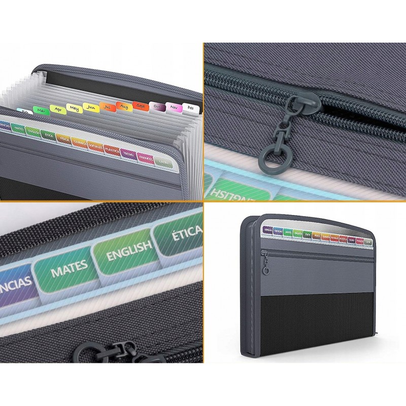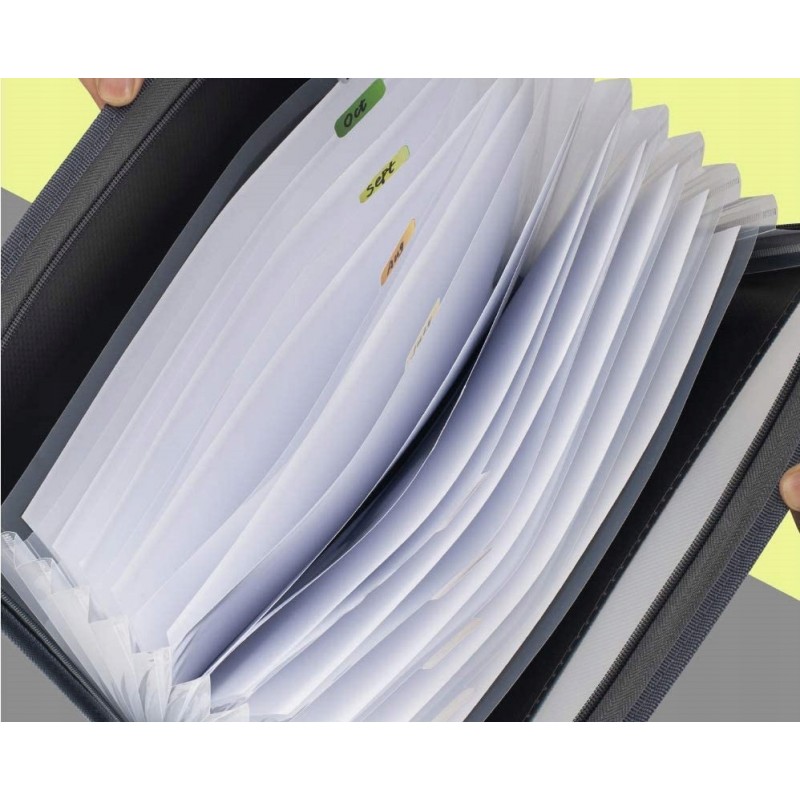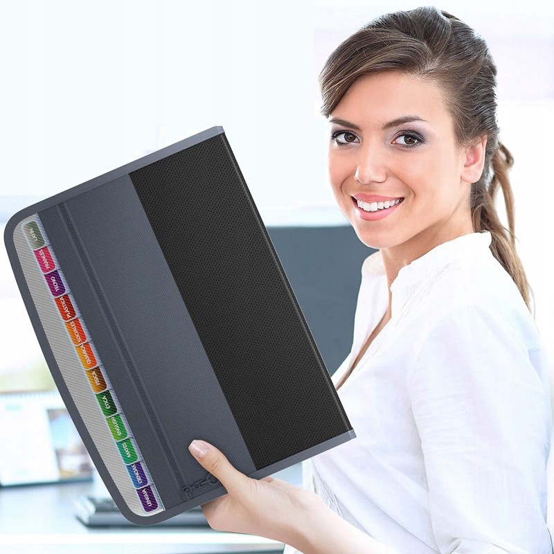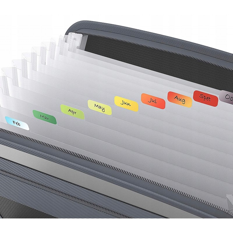 Oszczędza czas - 13 kolorowych kieszenie z górnymi zakładkami tworzą niezależne miejsca na dokumenty. Można użyć dostarczonych kolorowych etykiet do sortowania dokumentów według kategorii, co skraca czas wyszukiwania dokumentów.