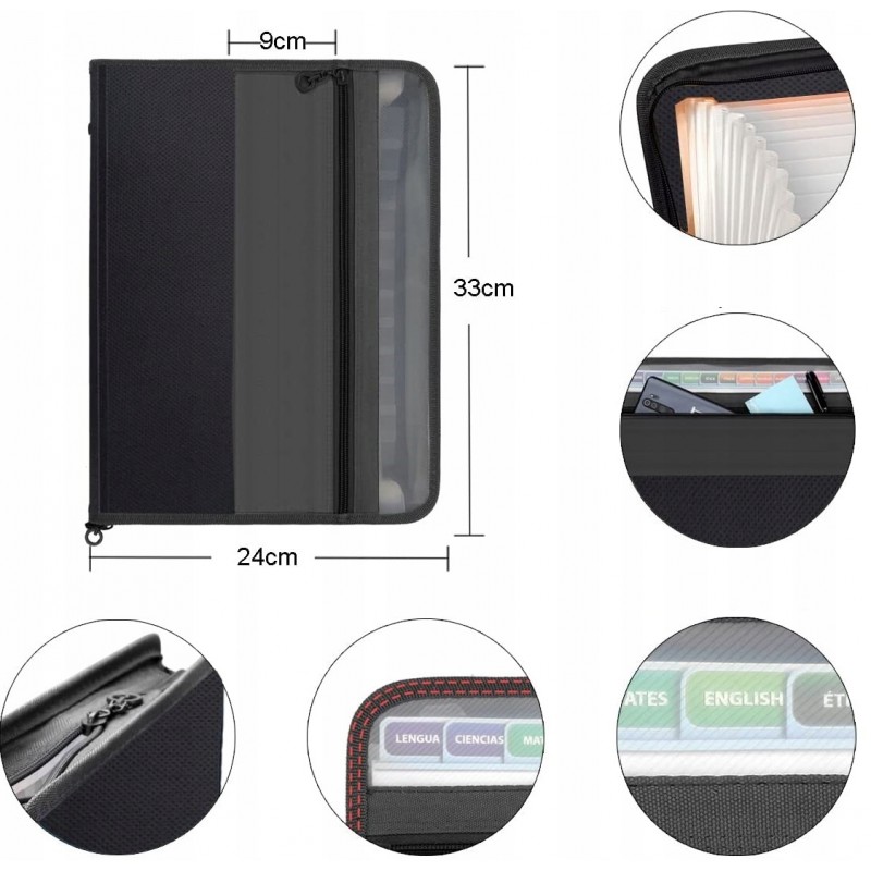 Posiada 13 kieszeni na dokumenty A4, Do kieszeni można łatwo włożyć nawet ponad 100 kartek papieru