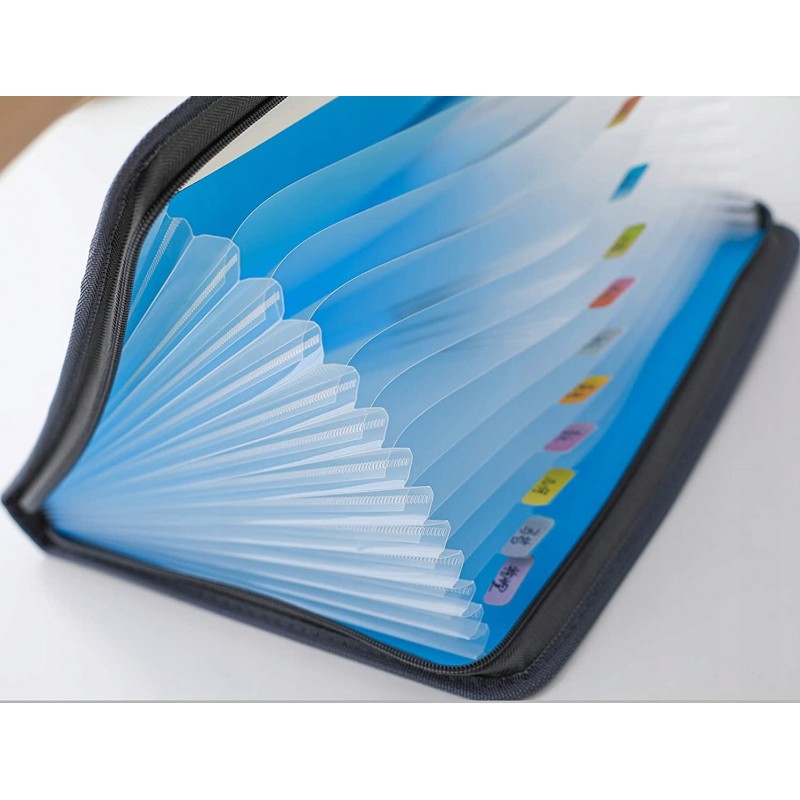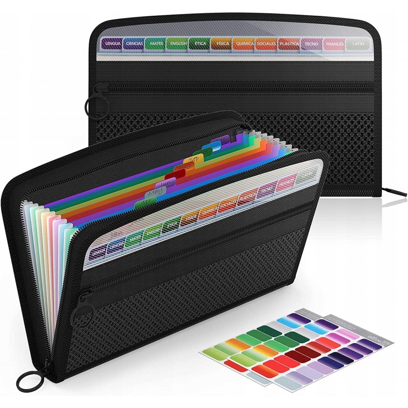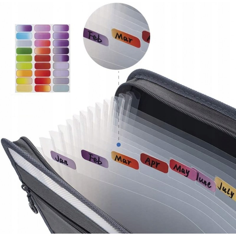 Oszczędza czas - 13 kolorowych kieszenie z górnymi zakładkami tworzą niezależne miejsca na dokumenty. Można użyć dostarczonych kolorowych etykiet do sortowania dokumentów według kategorii, co skraca czas wyszukiwania dokumentów.