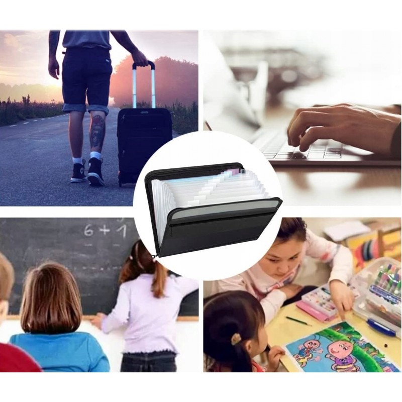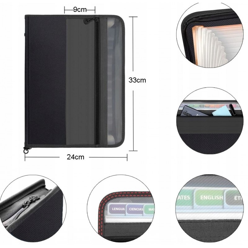 Posiada 13 kieszeni na dokumenty A4, Do kieszeni można łatwo włożyć nawet ponad 100 kartek papieru