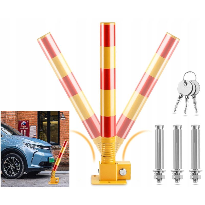 Blokada Parkingowa Miejsca Parkingowego na SPRĘŻYNIE Składana Słupek Klucz