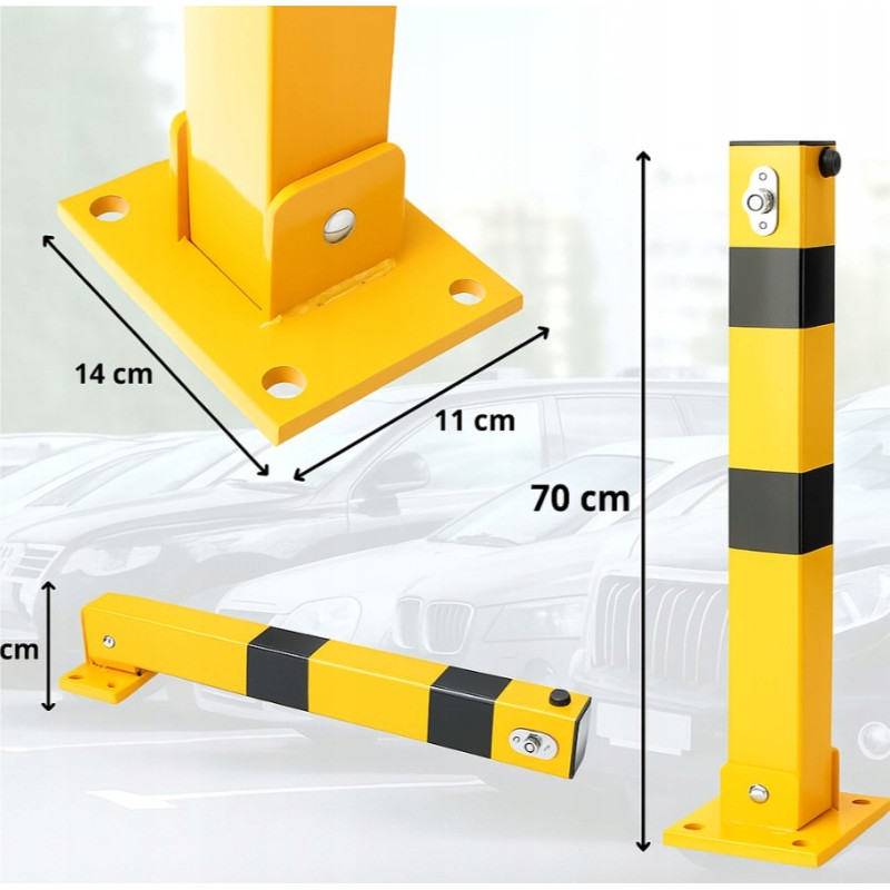 to niezawodne urządzenie, które skutecznie zabezpiecza Twoje miejsce parkingowe przed nieautoryzowanym dostępem. Wykonana z solidnej stali, pomalowana proszkowo na kolor żółty, jest odporna na korozję oraz trudne warunki atmosferyczne, co zapewnia jej długą żywotność. Wyposażona w zamek zamykany na klucz, blokada gwarantuje bezpieczeństwo i komfort użytkowania, umożliwiając szybkie składanie i rozkładanie w kilka sekund. Wysokość słupka 70 cm powoduje, że słupek jest wyraźnie widoczny