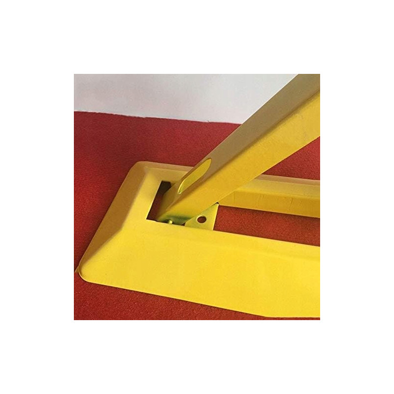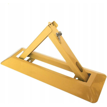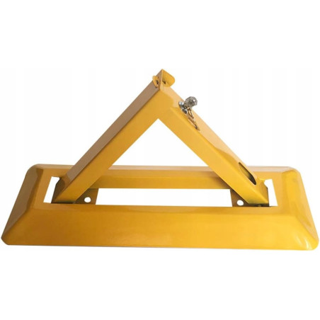 to solidne i funkcjonalne zabezpieczenie miejsca postojowego, wyróżniające się stabilną, trójkątną konstrukcją oraz zamkiem na klucz. Wykonana z grubej stali i pokryta odporną na warunki atmosferyczne powłoką, gwarantuje długą żywotność i wysoką odporność na nacisk oraz uszkodzenia. Po złożeniu zajmuje minimalną przestrzeń, umożliwiając swobodny przejazd, a po rozłożeniu skutecznie blokuje dostęp do miejsca parkingowego.