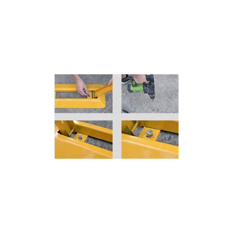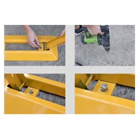 Blokadę należy przymocować do podłoża, za pomocą kołków rozporowych lub kotew. W przypadku nawierzchni luźnej lub uszkodzonej, należy wykonać wylewkę betonową umożliwiającą odwiert i zastosowanie kołków/kotew.