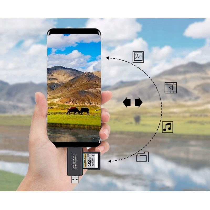 Wygodne. kompaktowe urządzenie do odczytywania kart SD i TF. Umożliwia odczyt i zapis danych z kart pamięci na urządzenia z systemem Windows, Mac OS, Linux oraz Android. Czytnik pozwala odczytać dane także na urządzeniach mobilnych takich jak telefony czy tablety.