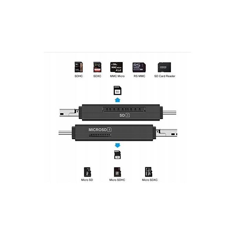 - Obsługa kart: SD, Mini SD, Extreme SD, Extreme III SD, Ultra SD, Ultra II SD, Ultra II SD Plus, SD-ultra-X, Ultra Speed SD, SD Pro, SDHC, Sd Elite Pro, Hs SD, MMC, RS MMC, RS MMC 4.0, MMC MOBILE, , MMC MICRO, MMC PLUS, MMC 4.2 i wiele innych. Prędkość odczytu na Micro USB i USB 2.0 do 480Mb/s