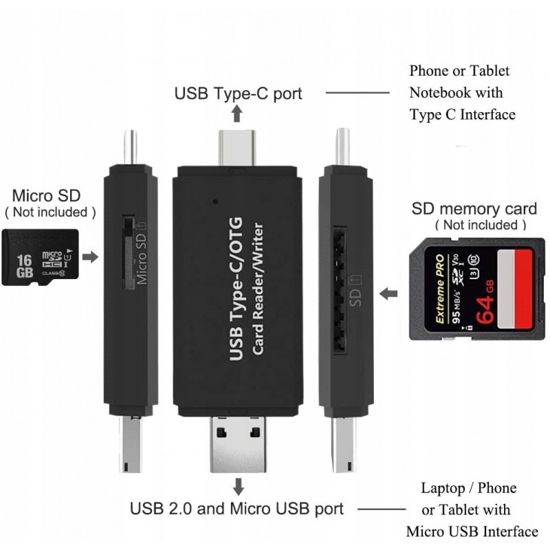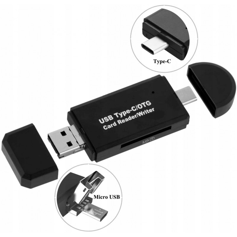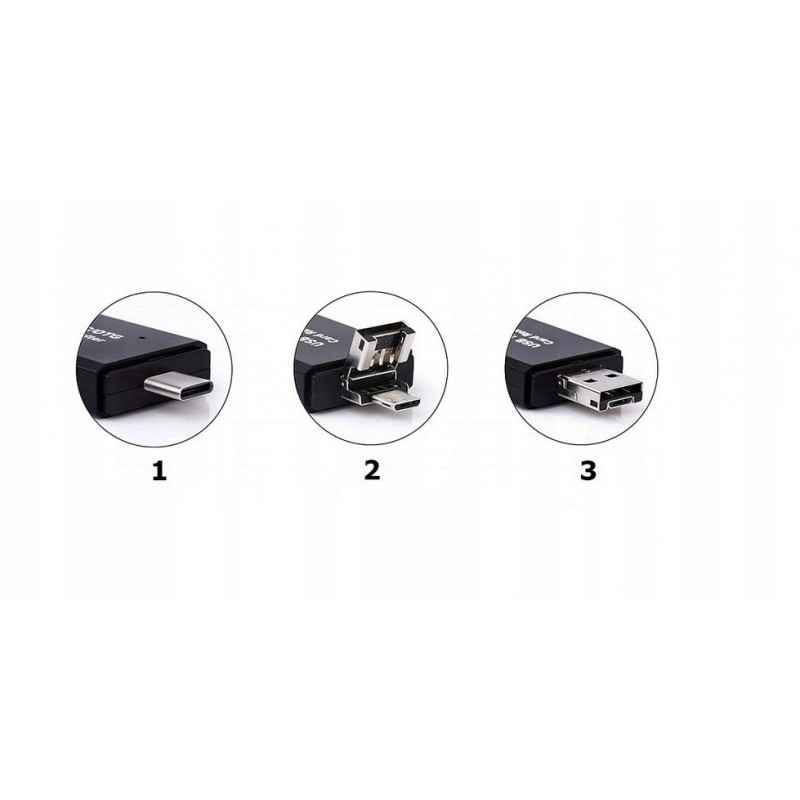 3w1 Czytnik kart SD microSD USB C Micro USB 3.0