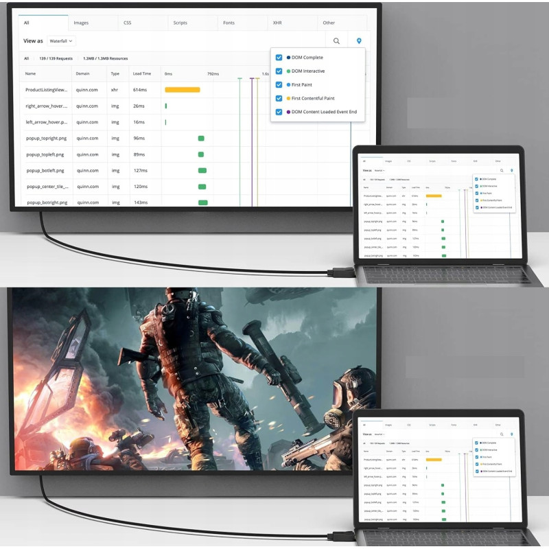 Odtwarza dokładnie ten sam obraz na dwóch ekranach (na przykład na laptopie i monitorze), co jest idealne do prezentacji, oglądania filmów i grania w gry.