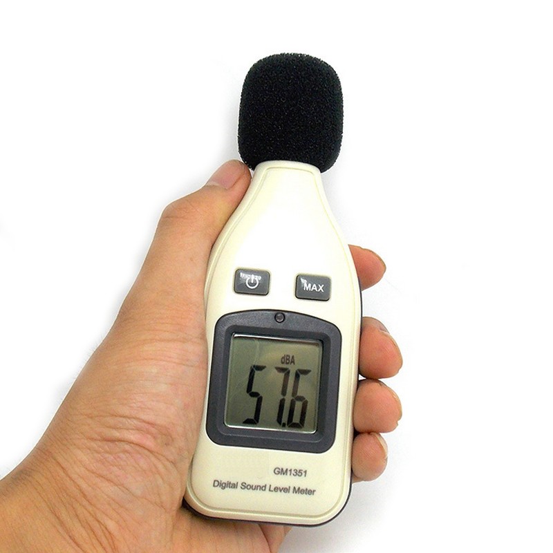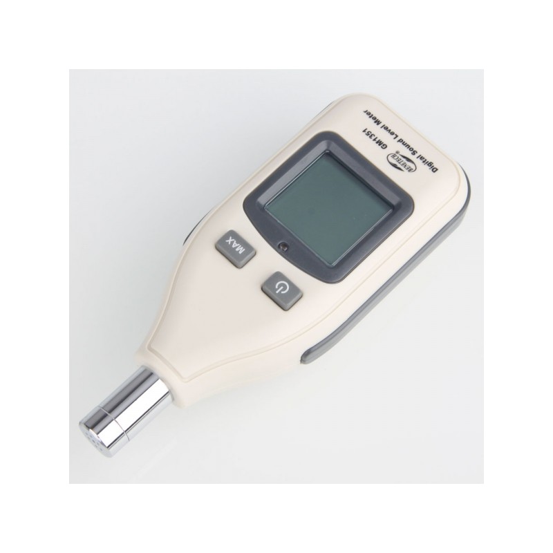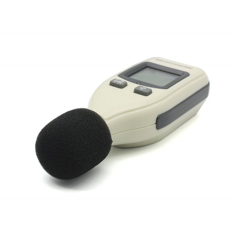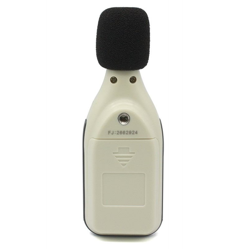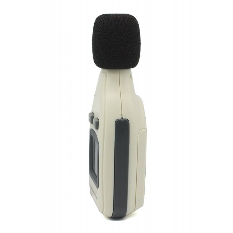 Miernik, decybelomierz, sonometr może mierzyć poziom hałasu pomiędzy 30dBA ~ 130dBa, redukując jednocześnie skutki szumu wiatru, aby uzyskać dokładniejsze odczyty.