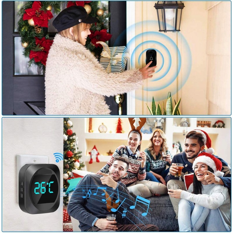 Dzwonek Bezprzewodowy Bezbateryjny + TERMOMETR