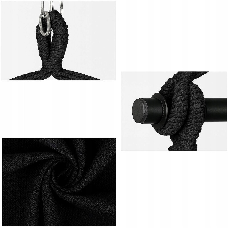 - Wytrzymała konstrukcja – grube liny i solidna belka zapewniają bezpieczeństwo i stabilność.