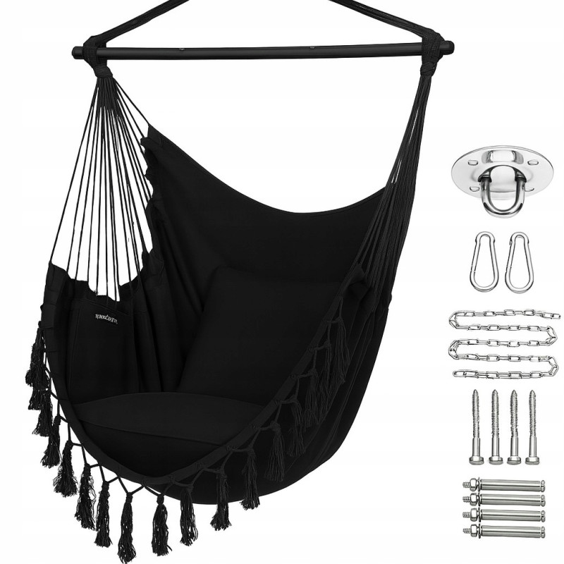 Niezależnie czy marzysz o relaksie z książką, chwilach spokoju na świeżym powietrzu, czy estetycznym dodatku do wnętrza – ten hamak stanie się Twoim ulubionym miejscem odpoczynku!
