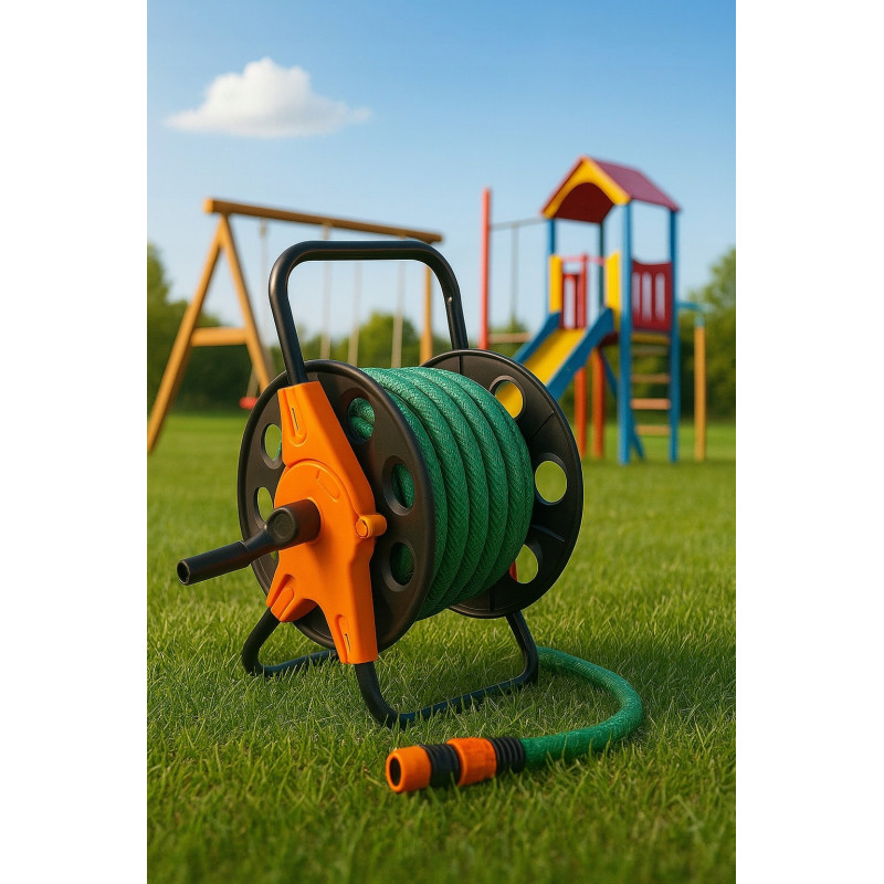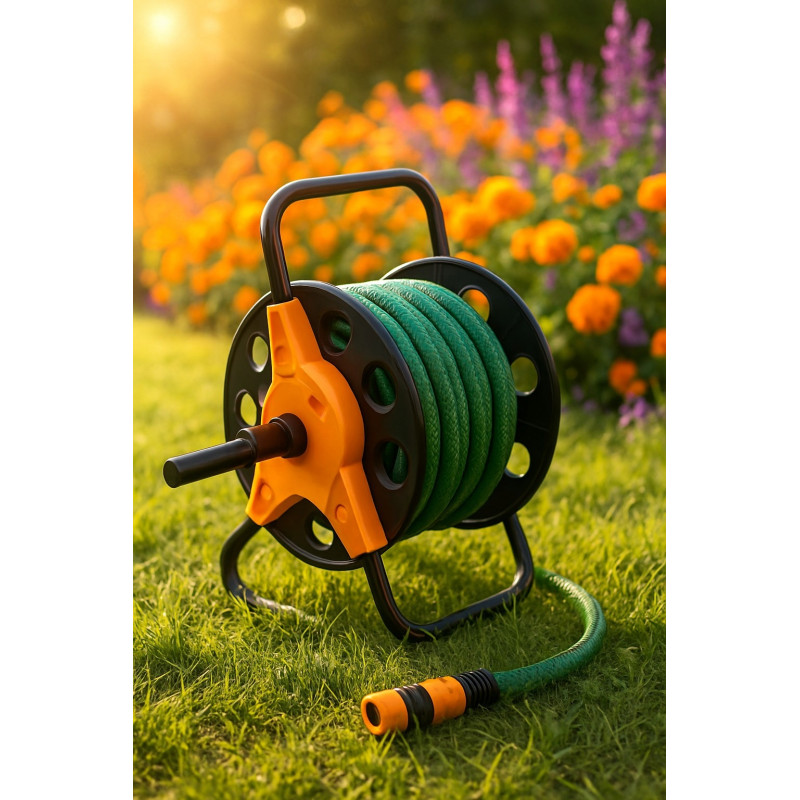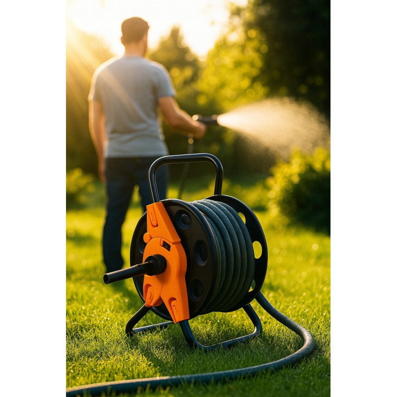 Ten niezawodny bęben to praktyczne rozwiązanie do przechowywania i zwijania węża ogrodowego – bez plątania, zagięć czy bałaganu.